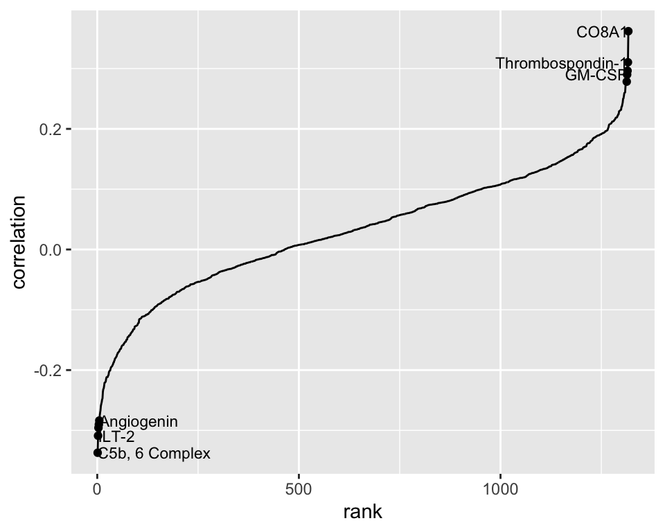 Back to the proteomics data, the variable importance scores from a random forest provide another means of identifying proteins.